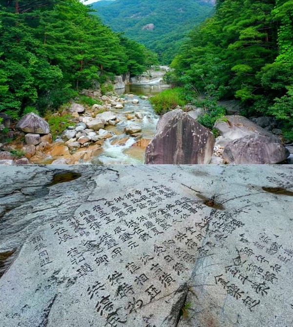 [영상앨범 산] 1,500평 규모의 바위는 무릉반석으로 옛 명필가와 시인 묵객들의 흔적이 남아 있는 무릉계곡의 명물이다. 가슴까지 시원해지는 물소리가 먼저 반기는 무릉계곡. 1,500평 규모의 바위는 무릉반석으로 옛 명필가와…