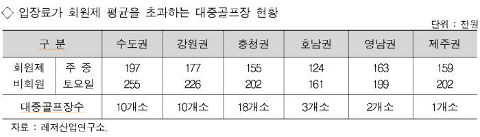 대중골프장 맞아?전국 44곳 그린피 폭리